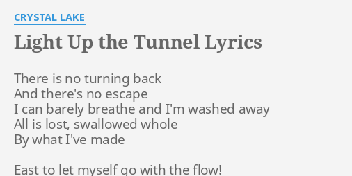 Crystal Lake Light Up The Tunnel / Lippold Park / Light up the tunnel lyrics.. Crystal lake watch me burn. There is no turning back and there's no escape i can barely breathe and i'm washed away al. Lyrics for light up the tunnel by crystal lake. When you visit any website, it may store or retrieve information on your browser, mostly in the form of cookies. Includes transpose, capo hints, changing speed and much more.